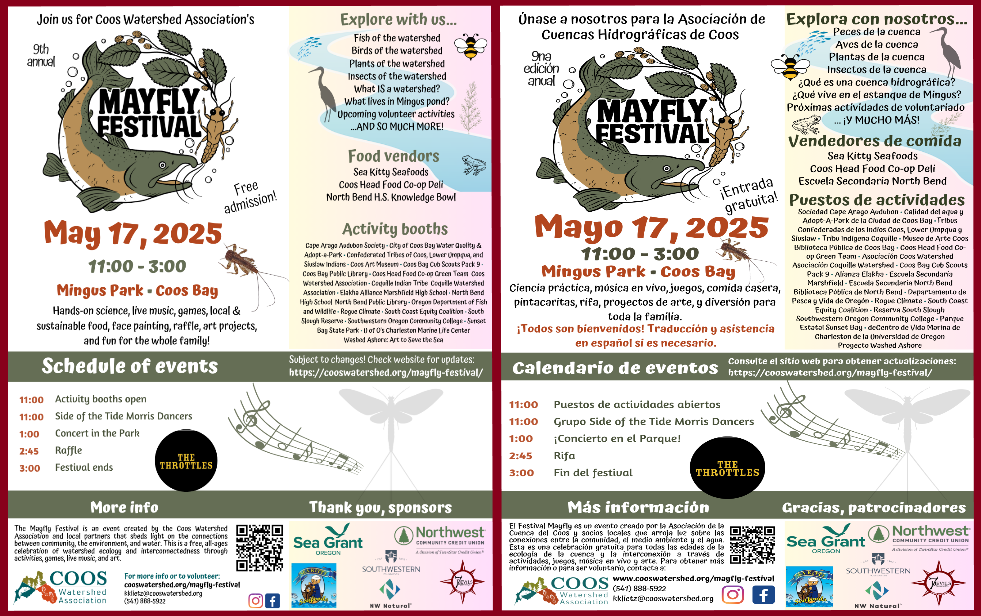 The Mayfly Festival is an event created by the Coos Watershed Association and local partners that is designed to shed light on the connections between community, the environment, and water.