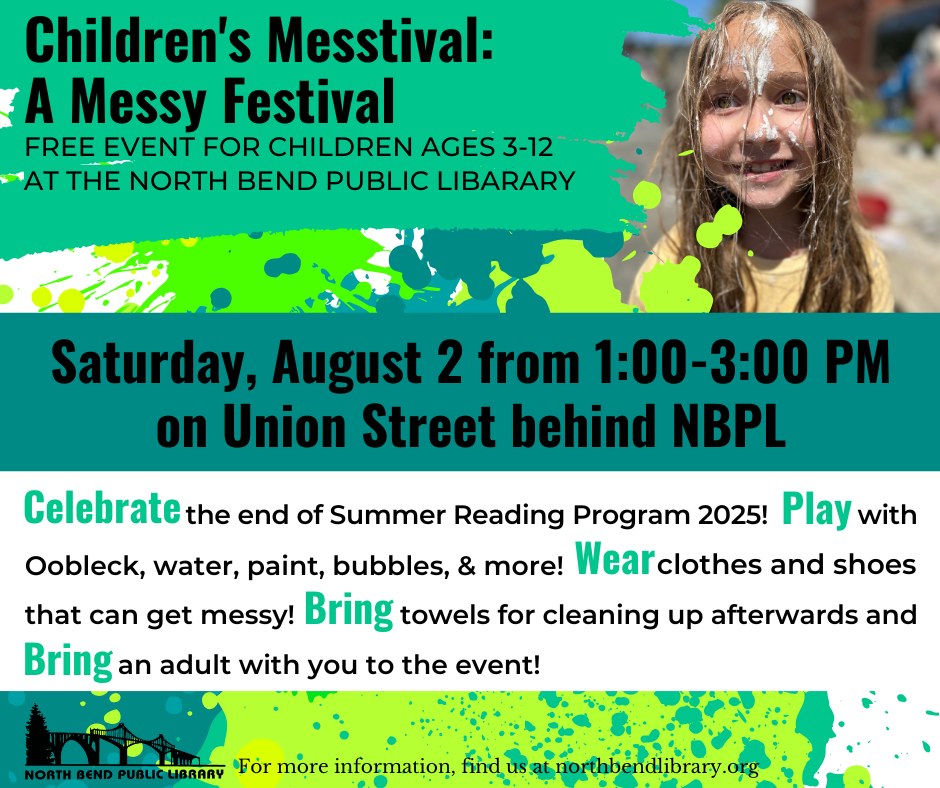 Join anytime between 1–3 PM. Kids can explore Oobleck, water, paint, shaving cream, and more.