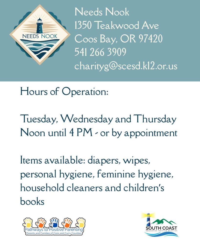 Items available: diapers, wipes, personal hygiene, feminine hygiene, household cleaners, and children’s books